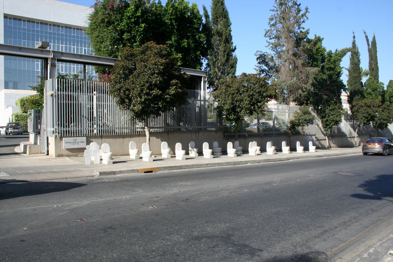 On a June day he placed 20 toilet sculptures made of concrete and plaster outside the Central Bank in Nicosia as a symbolic response to the government’s handling of the haircut, which caused thousands to lose their life savings.