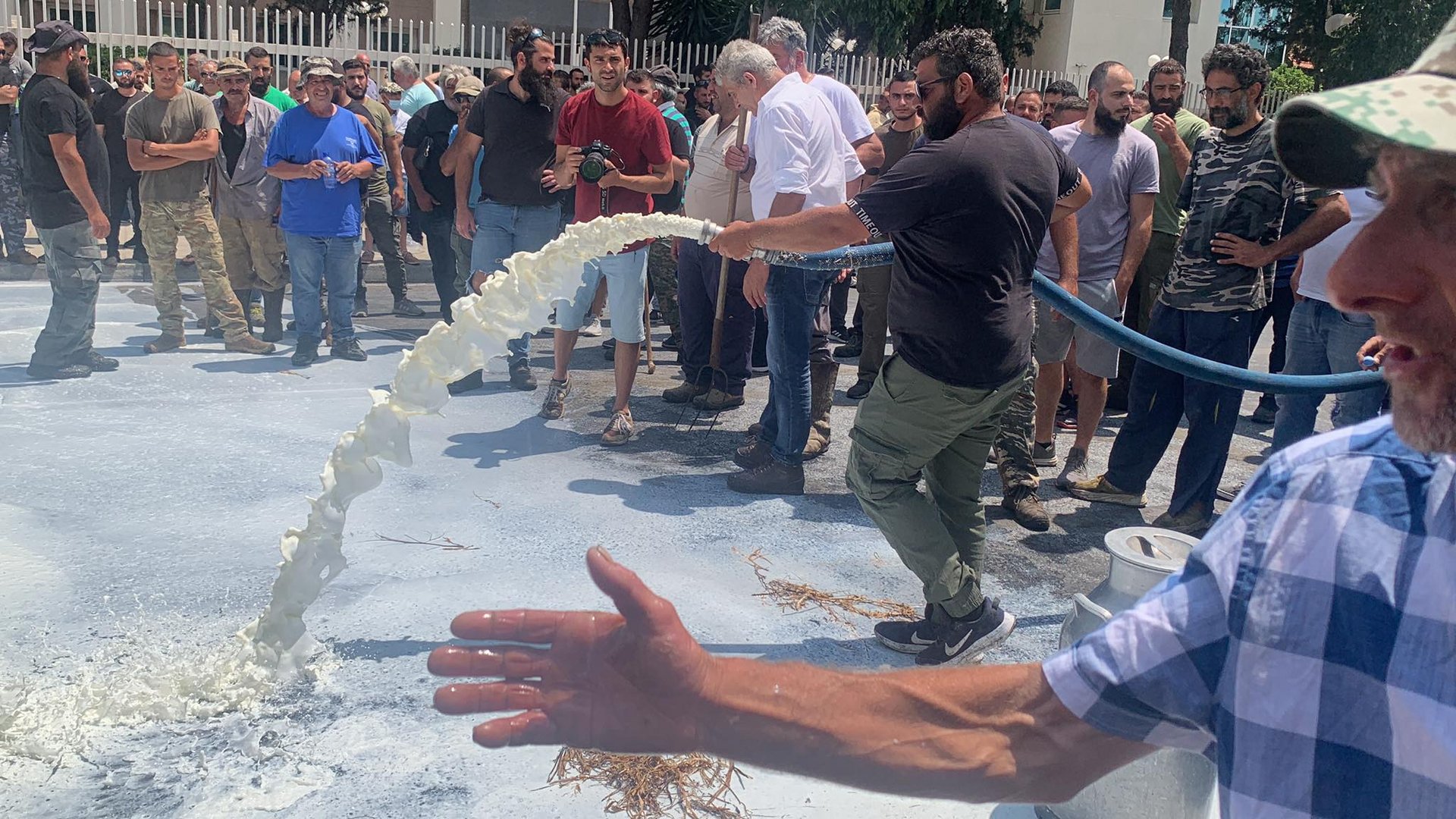 There they poured large quantities of milk from milk churns or by using hoses straight out of the tanker outside the entrance. Some also set fire to bales of hay, just in front of the gate to the presidential palace, that were extinguished by the fire service.