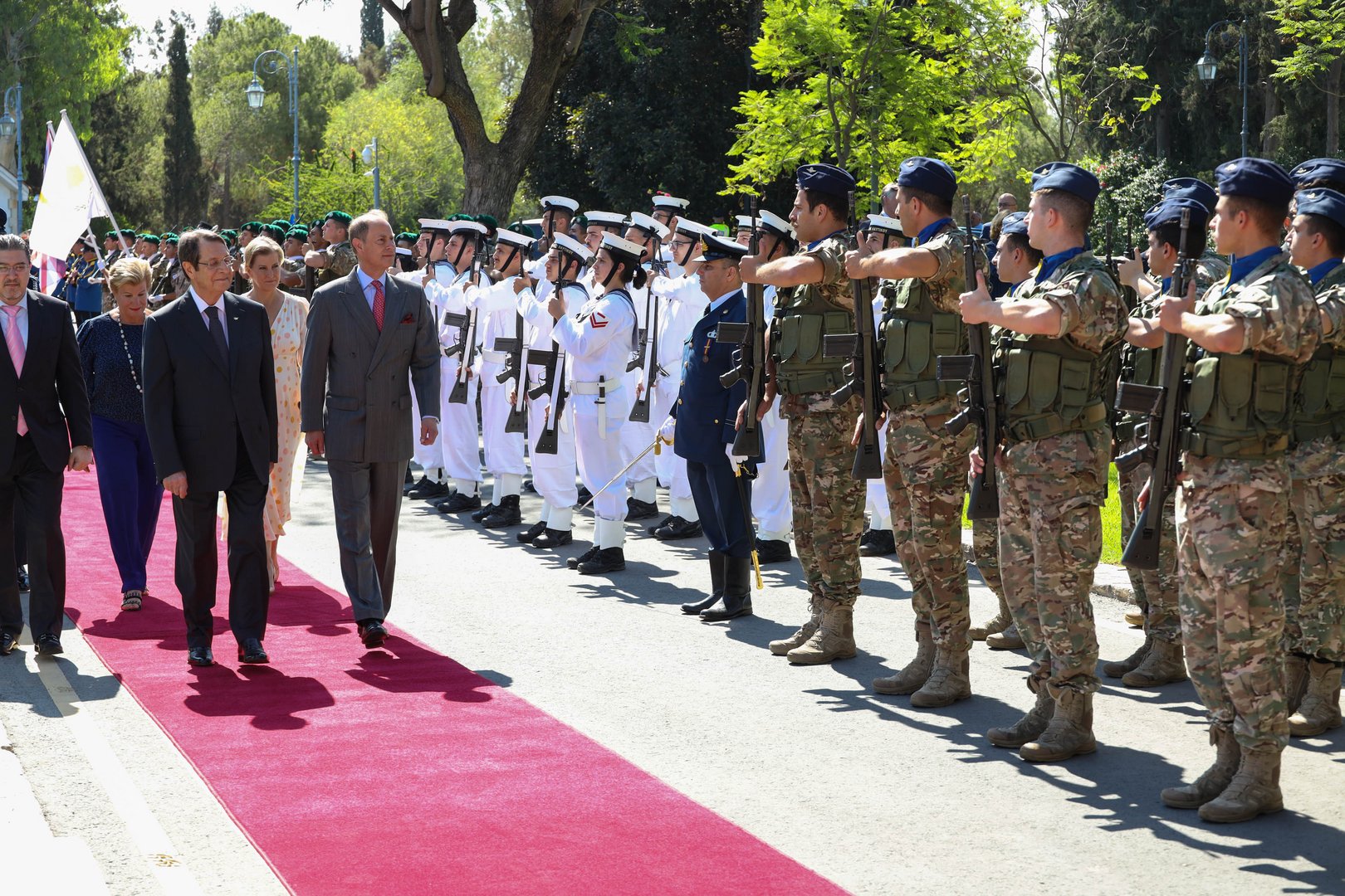President Nicos Anastasiades and his wife Andri welcomed the Earl and Countess of Wessex, Prince Edward and his wife Sophie to the Presidential Palace on Tuesday after the royal couple landed on the island on Monday.