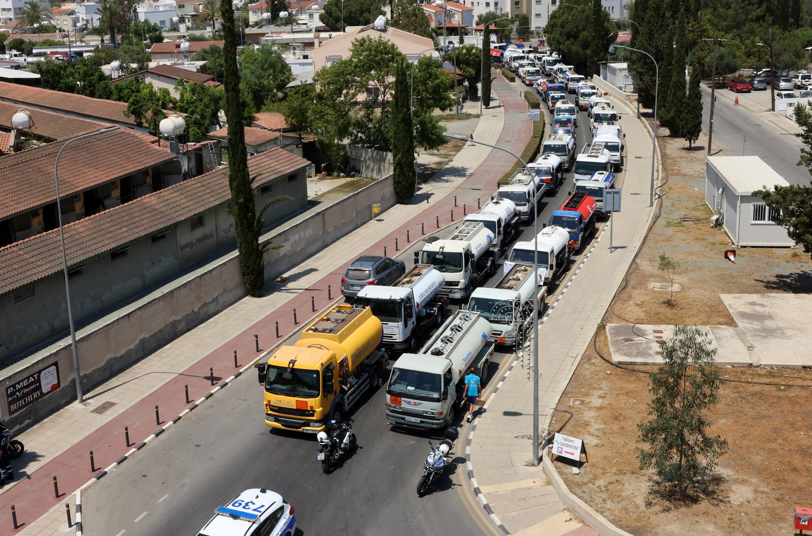 Tanker drivers from all over the island converged in Nicosia at the Ayios Dometios crossing point at 11am, from where after they continued to the presidential palace, demanding customers return or the government should introduce support measures for loss of business.