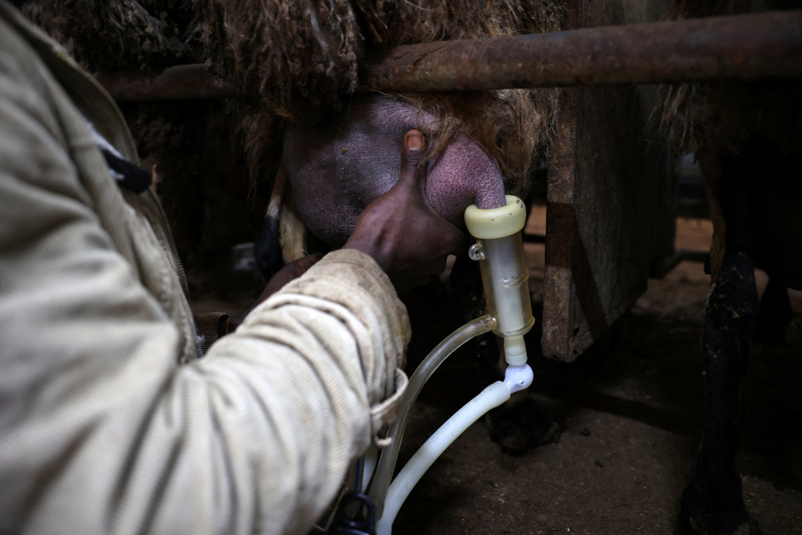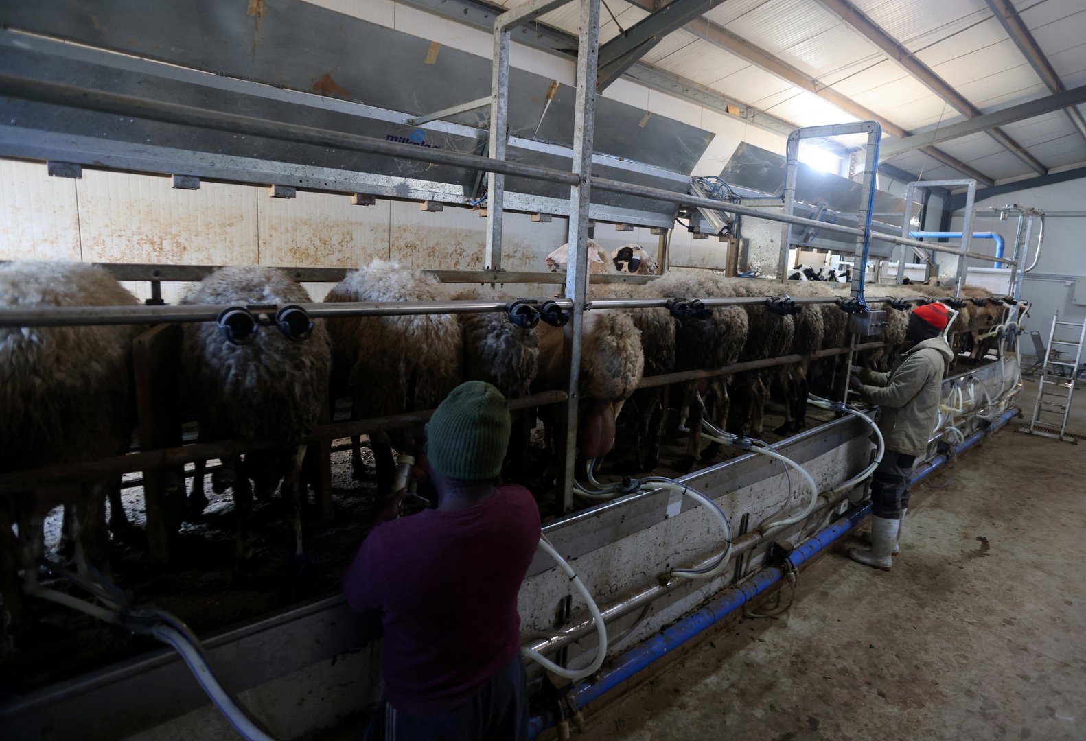 - Workers milk sheep on Pantelis Panteli’s farm in Kokkinotrimithia, Cyprus February 9, 2024. REUTERS/Yiannis Kourtoglou