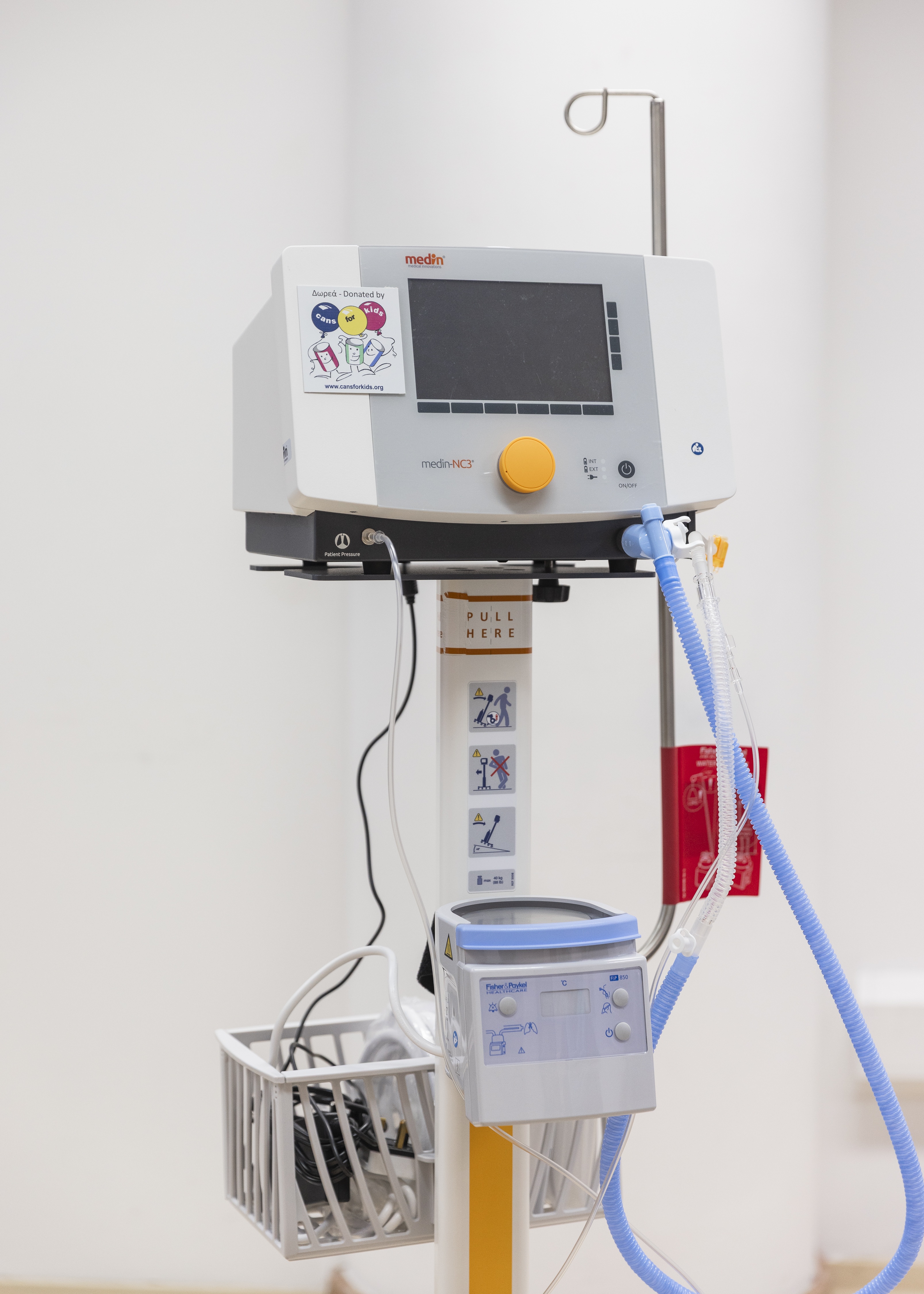 The neonatal intensive care unit of Limassol general hospital received a breathing support machine for newborns on Thursday. The medin-NC3 CPAP driver, valued at €14,500, was a donation from the Cans For Kids association.