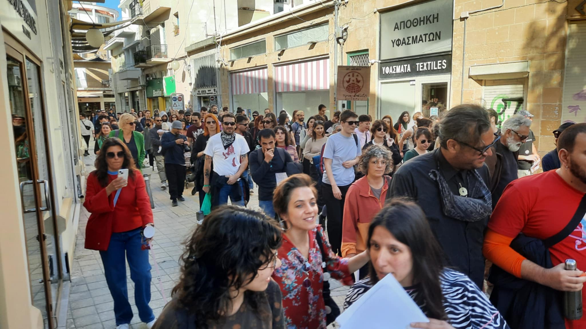 On the march through the old streets of Nicosia, hundreds of demonstrators chanted slogans such as, “on the street and even at home, get your hands off our bodies”, and “they never asked any rapist where he was, what he was wearing, and how much he had had to drink”.
