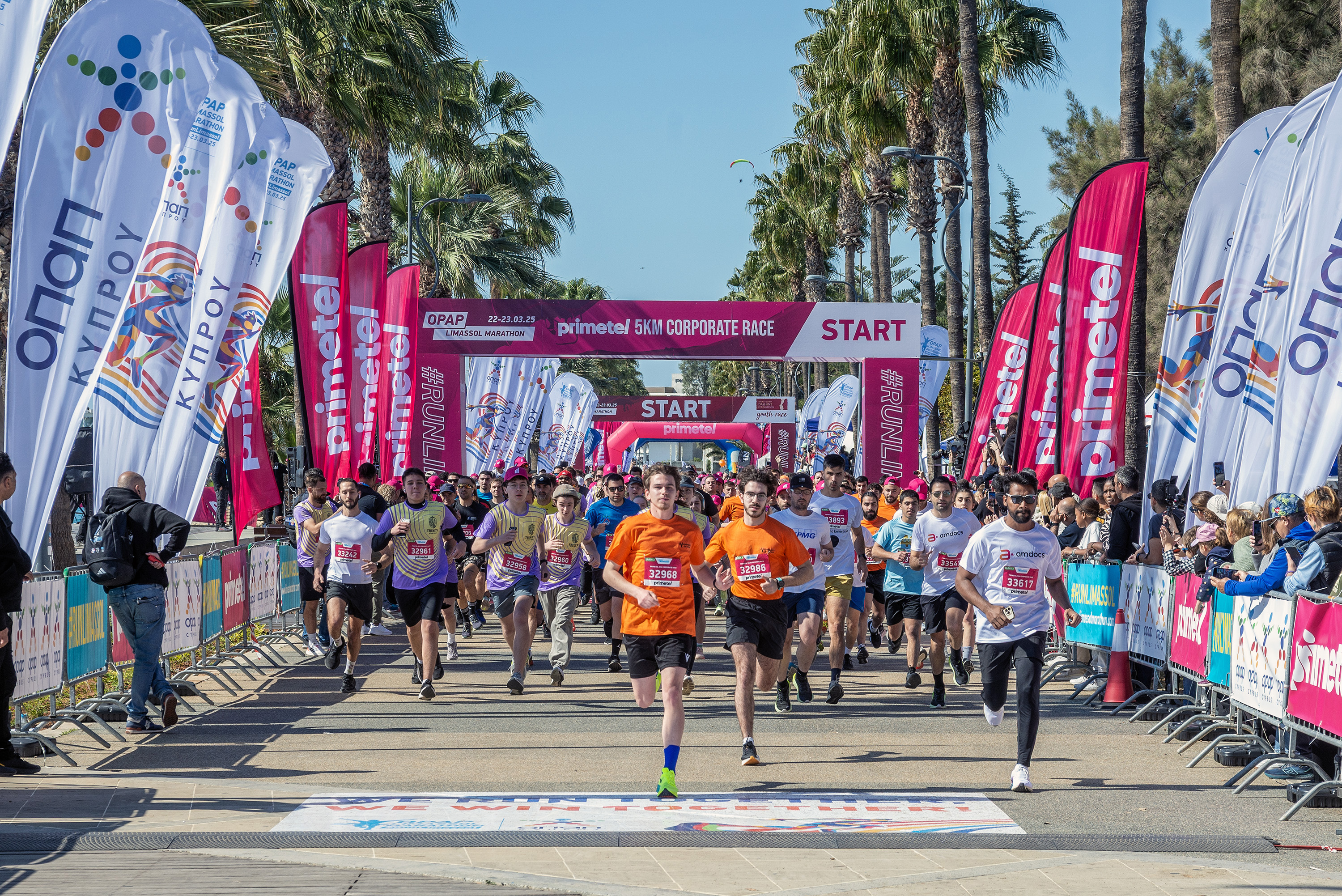 In the Primetel corporate 5km race, the team from the Cyprus Ports Authority claimed first place, followed by the team from the Limassol passenger transport company (Emel) in second, and InDrive in third.