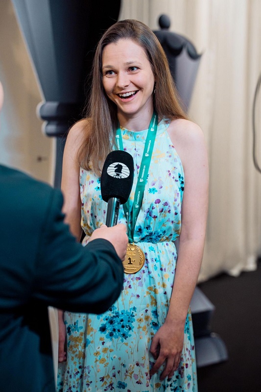 “In terms of quality I would single out the game with Stavroula Tsolakidou – it was a difficult game starting from the opening with the sacrifice of a pawn for initiative. And the most important was the game with Elisabeth Paehtz in the penultimate round. After losing to Olga Badelka I had to win. It was the only way to continue the fight for first place. At first I was doing well, then I lost the thread of the game and wasted a lot of time. It seemed that it was going to a draw, but my opponent underestimated one idea, after which she got a difficult position, which she could not defend.”