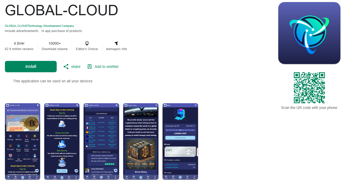 If you want to learn more about Global Cloud Mining, for your better experience, it is recommended that you visit it on your mobile phone.