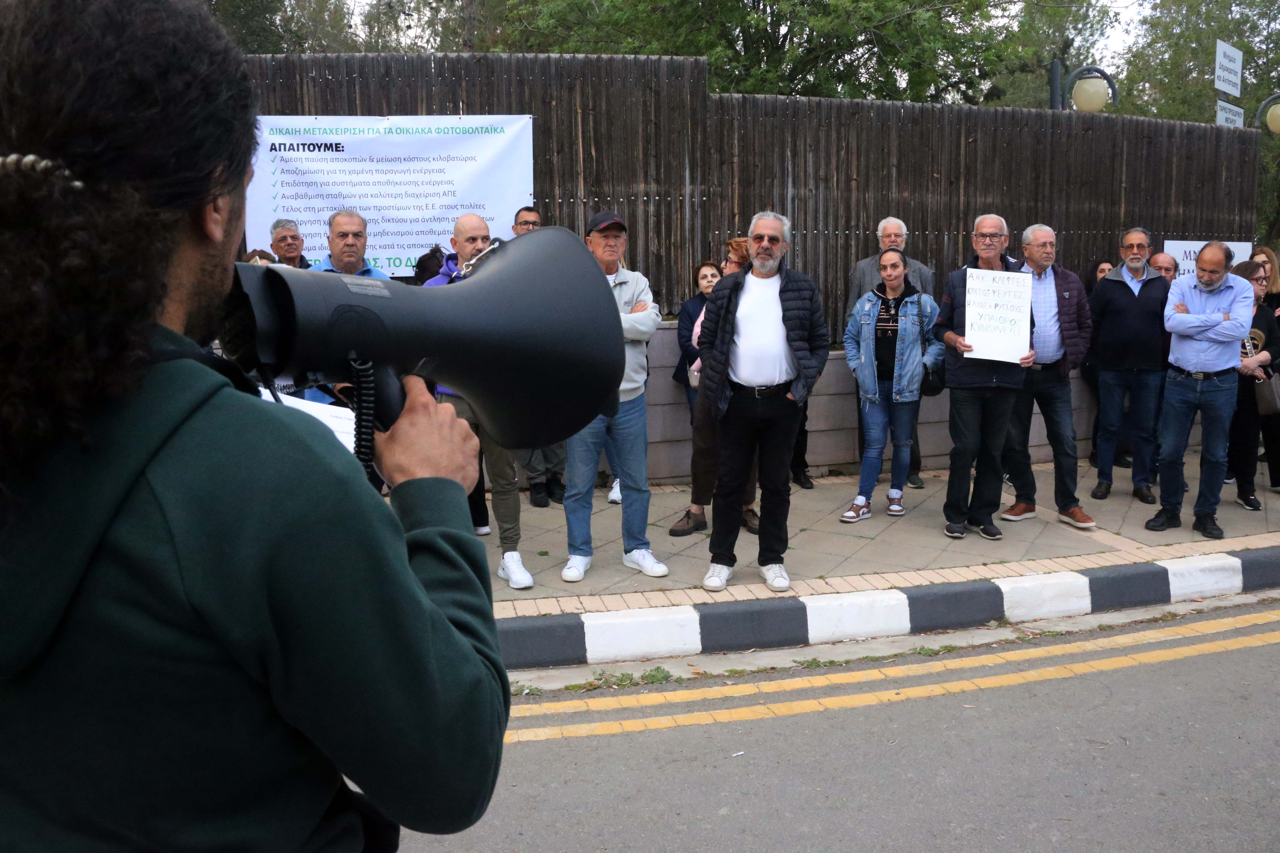 A small protest was held outside the presidential palace on Wednesday evening against solar panel shutdowns imposed by the transmission system operator (TSO) on solar panels based at residential properties.