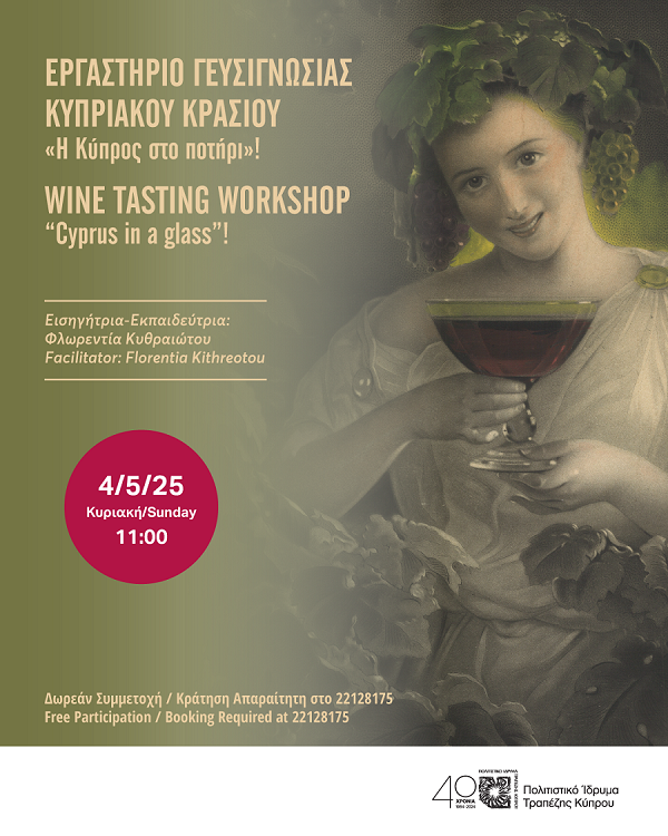 The Bank of Cyprus Cultural Foundation, in collaboration with the author and educator Florentia Kytheotou, invites you to the second workshop of this trilogy, a journey into the world of the Cypriot vineyard on Sunday 4 May 2025.