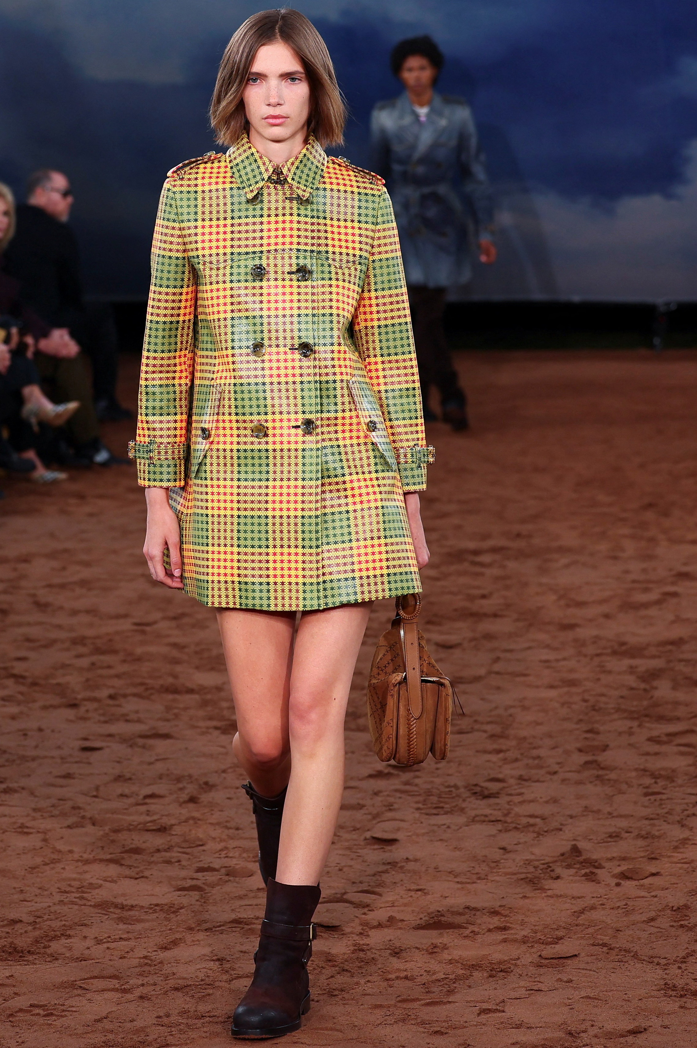 Burberry’s check pattern featured on chainmail mini dresses in black and silver, and pink and neon green, and on trench coats, which also came in snakeskin and a tarot card print.