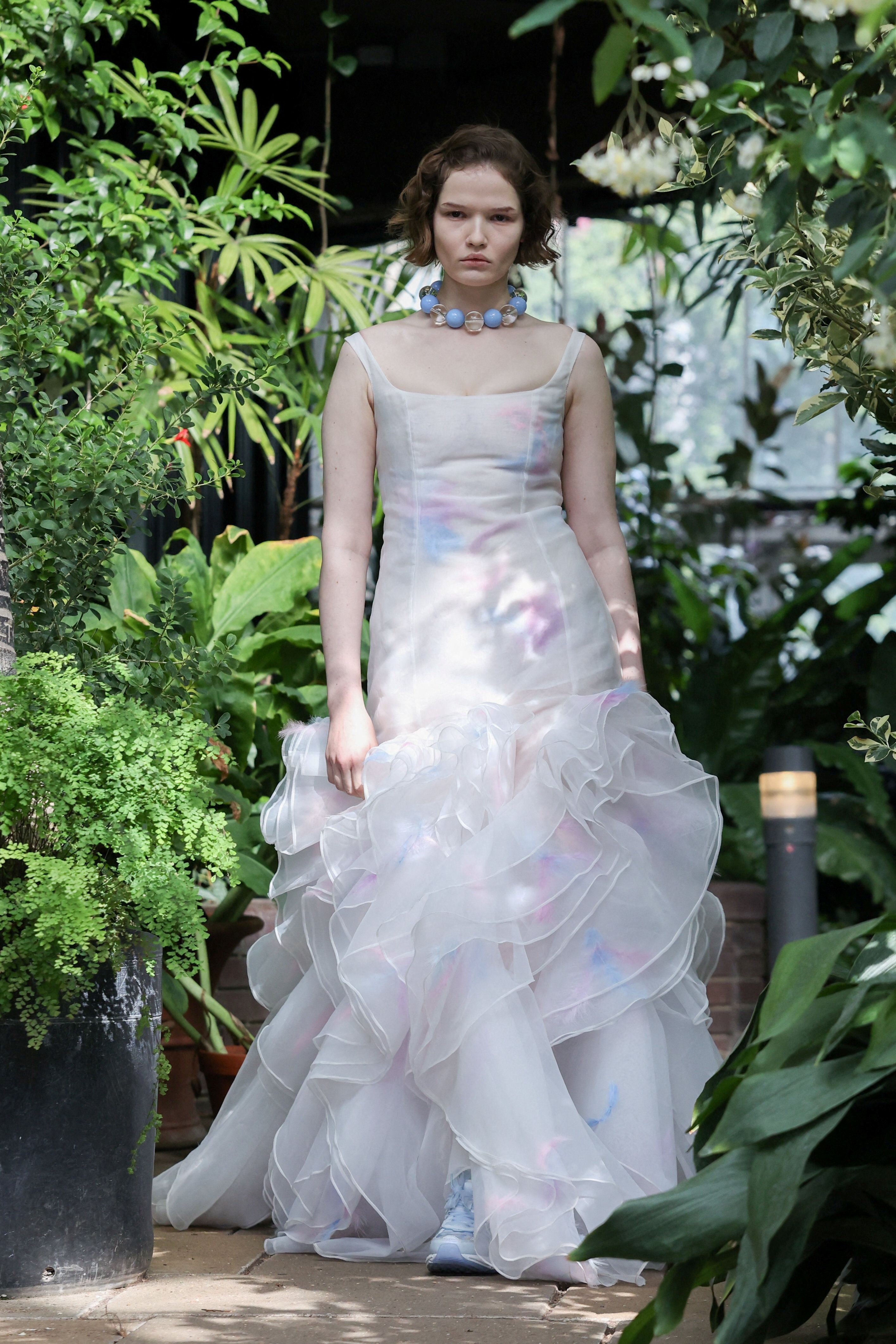 Models wore floral and frilly designs that nodded to 1960s fashion, including plenty of short dresses as well as cut-out gowns.