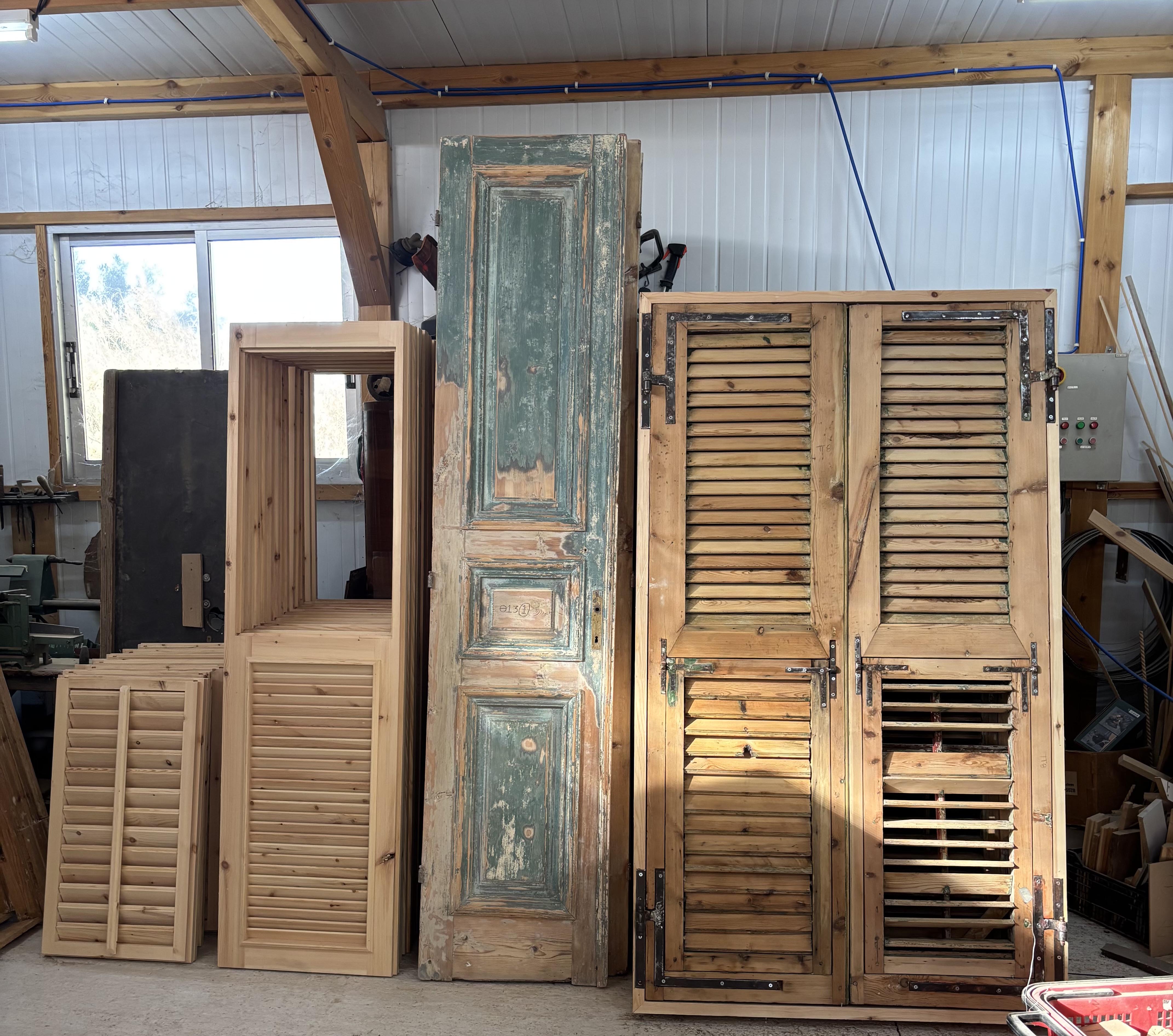 In the workshop we met Andros, one of the owners and a skilled carpenter, who was busy renovating a number of beautiful old shutters ready for a new boutique hotel. He showed us some impressive machinery that strips the paint before the shutters are lovingly restored. Although Andros had just been to the dentist, and was clearly in some discomfort, he was more than happy to indulge our curiosity around some of the larger items, such as an impressive white horse-drawn carriage and a very old upright piano that apparently belonged to a famous pianist. I also found a set of two gorgeous side tables with patterned, tiled tops that would have looked great on my veranda. Unfortunately, Andros had just finished renovating them for someone else.
