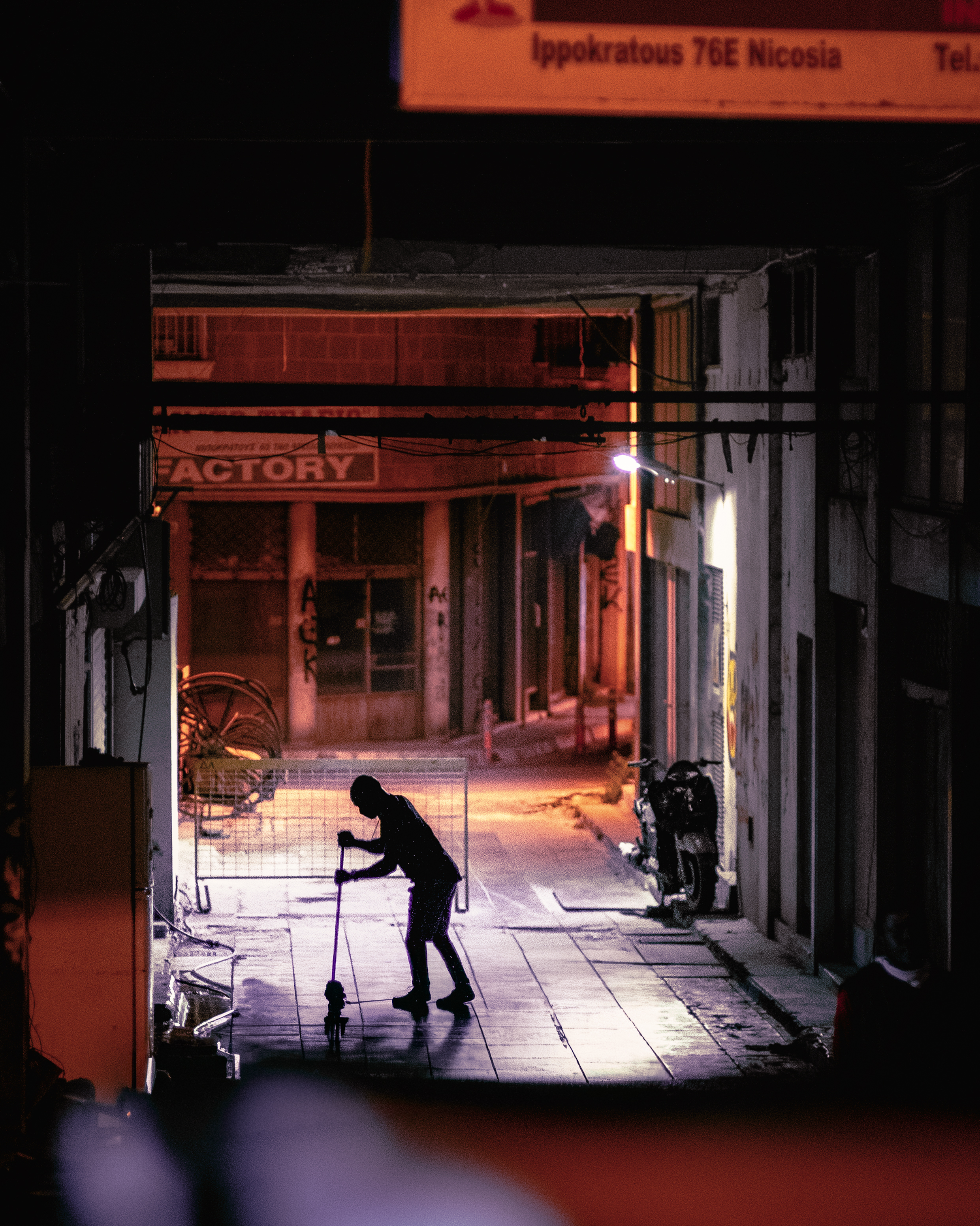 “I was casually trying some stuff with my camera that night, I wasn’t planning on shooting anything – but I just turned around and saw that guy mopping, and the light behind him. Everything worked.”
