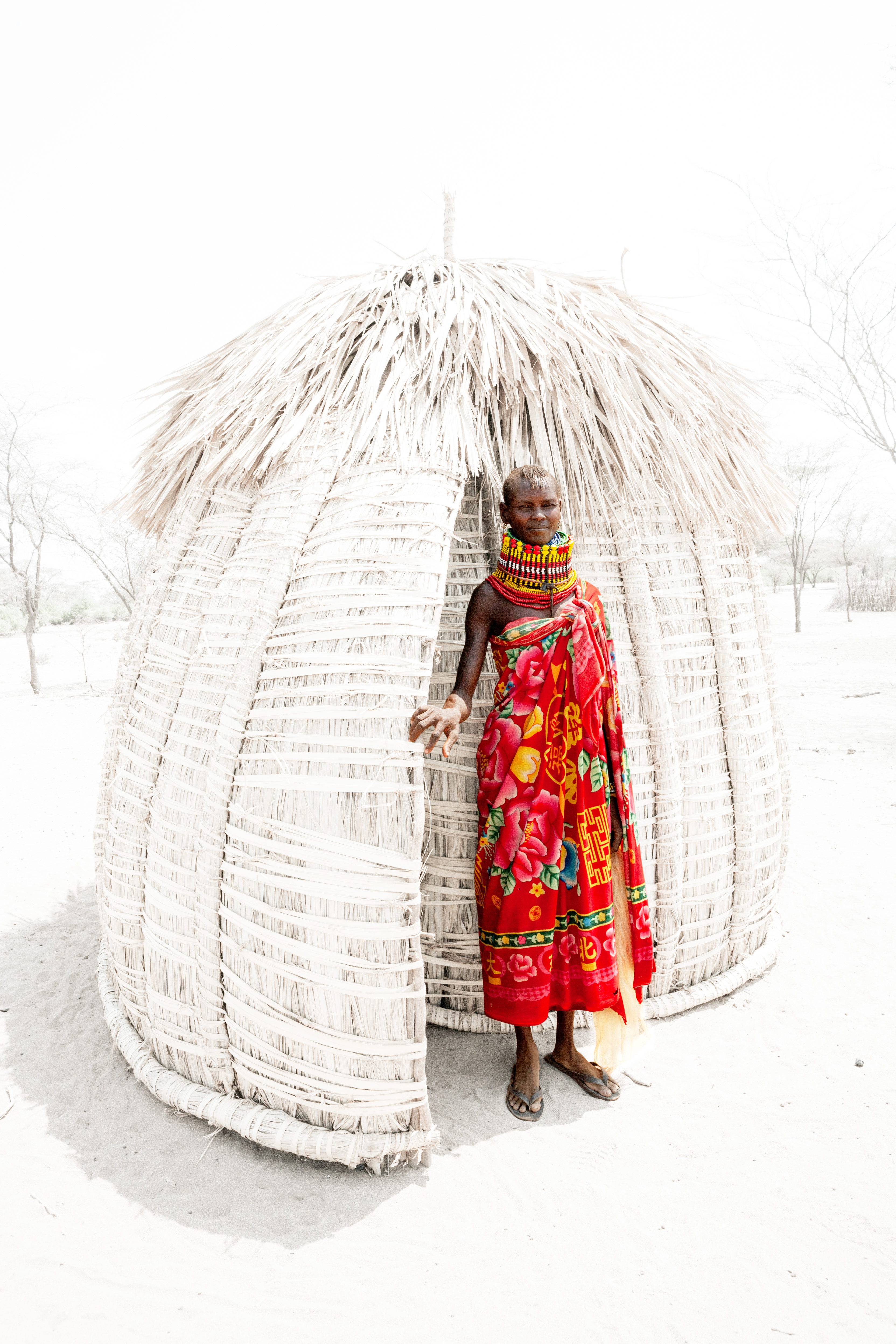 He notes that upon closer inspection, the photographs capture brightly-dressed figures with shaven heads, beaded collars and necklaces. Members of the Turkana tribe pose before Shacola’s lens and she creates timeless formal portraits in striking natural environments.