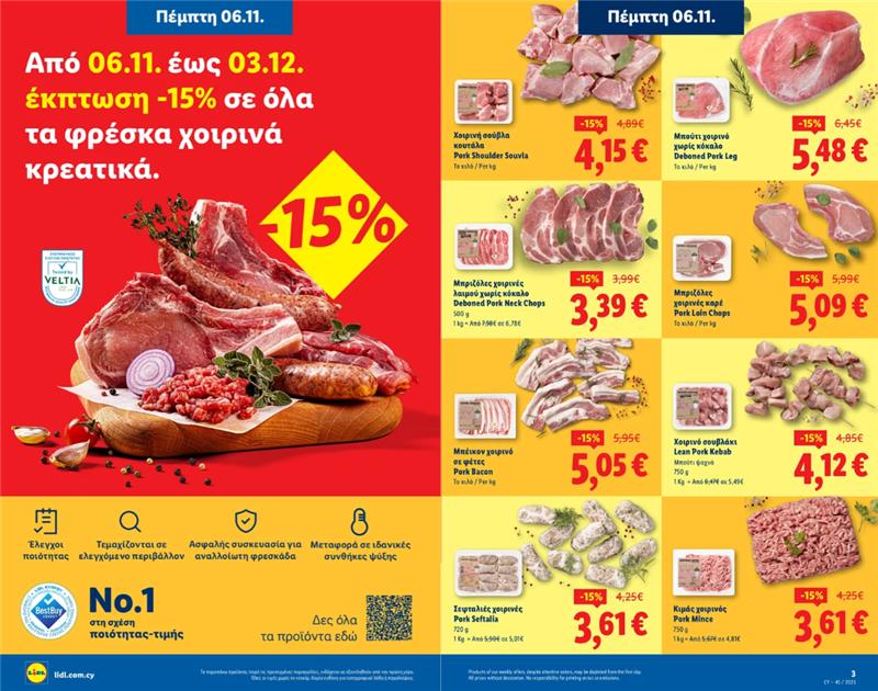 Consistent with its commitment to quality products at affordable prices, Lidl Cyprus is taking a new initiative that makes fresh pork even more accessible to everyone. From Thursday, November 6th to Wednesday, December 3rd, the company is offering a 15% discount on all fresh pork products, with absolutely no discount in terms of quality, taste and freshness.
