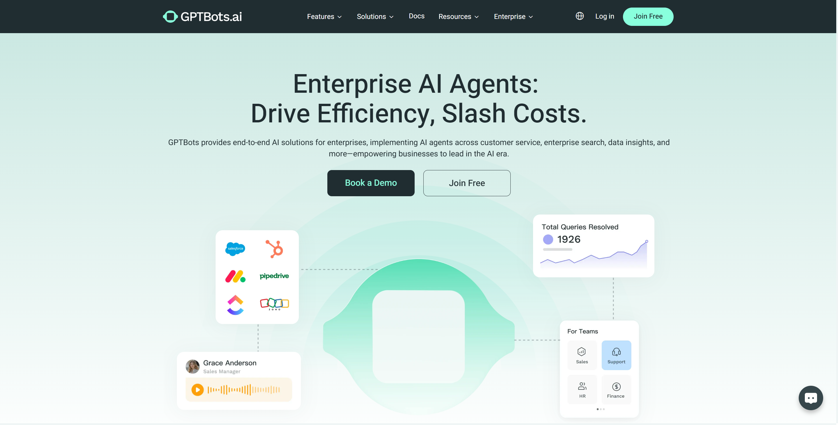 GPTBots.ai is one of the most complex platforms that are dedicated to creating and implementing enterprise AI agents without necessarily knowing any code. It integrates both strong AI and easy-to-use visual interfaces so that advanced agent development is available to both business users and developers.