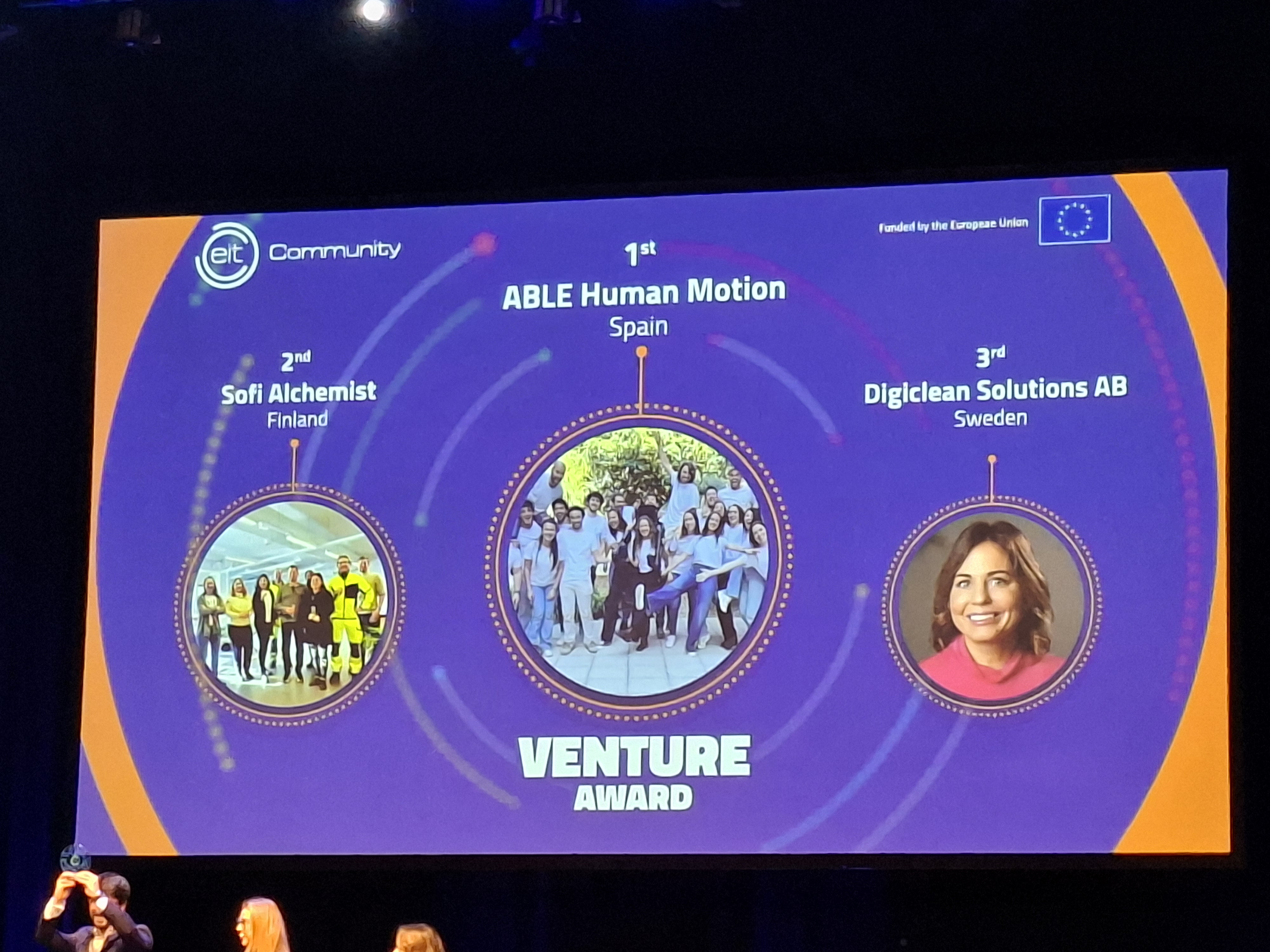 The Venture Award went to Spanish company ABLE Human Motion. The company designs robotic exoskeletons to support rehabilitation and mobility. Second place went to Finnish startup Sofi Alchemist. Third place was awarded to Sweden’s Digiclean Solutions AB. ABLE Human Motion also won the Public Award based on a community vote.