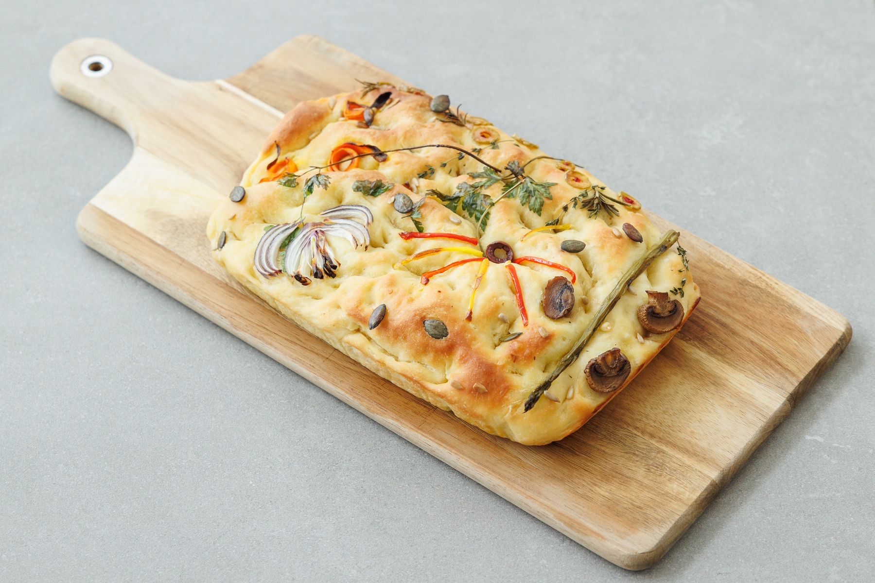 Let the focaccia cool a little before cutting and serving.