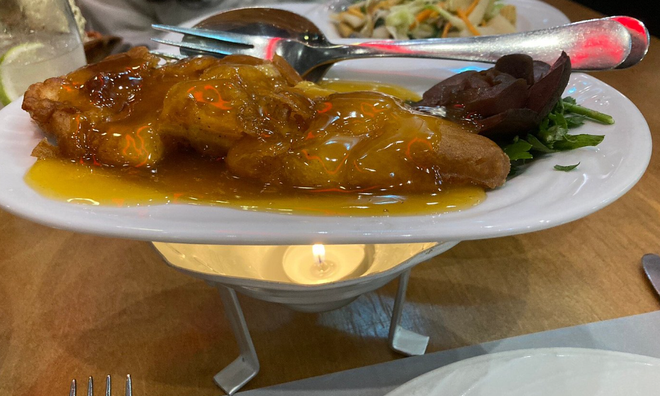 The crispy beef was the star of the meal for me. Coated in a red glaze that looked sweet at first glance but wasn’t overpowering once you tried it, the beef stayed crisp, even sitting above the candle, and every bite had that satisfying crunch. The pork with cashews felt comforting in a home-style way, simple but honest. No fancy twists, just meat, nuts and sauce doing exactly what they should. The chow mein worked as an easy side, nothing pushy or overly seasoned, and the rice filled the gaps and soaked up all the tasty sauce. I also loved the lemon chicken, but the sauce was a little on the sweet side for my partner, as was the sauce on a couple of other dishes, leaving me and my dad to fight it out for her share! Luckily, she didn’t go hungry as her extra spicy Szechwan filled the gap.