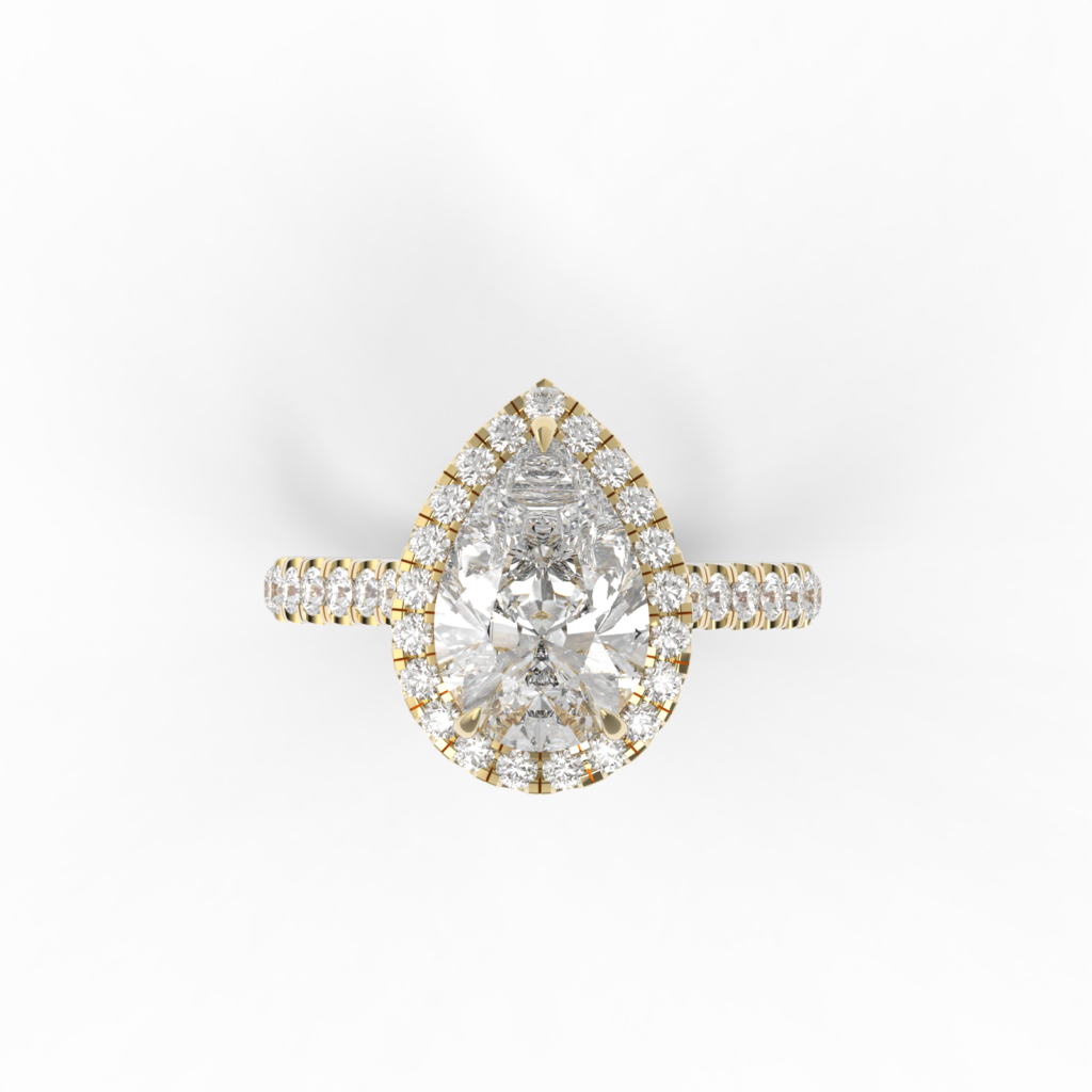 Pear-shaped centres draw the eye along the finger and create a distinctive silhouette. The pointed tip can face up or down, which changes the mood of the ring. This cut works for wearers who want something recognisable and expressive without feeling overly ornate.
