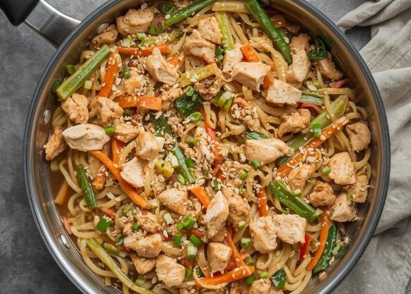 This one-pot is quick, easy and full of flavour – perfect for busy weeknights. Tender chicken, crunchy vegetables, and soft noodles all get coated in a light, savory sauce that hits the right balance of comforting and satisfying. Minimal prep, minimal cleanup, and maximum taste – dinner without the stress.