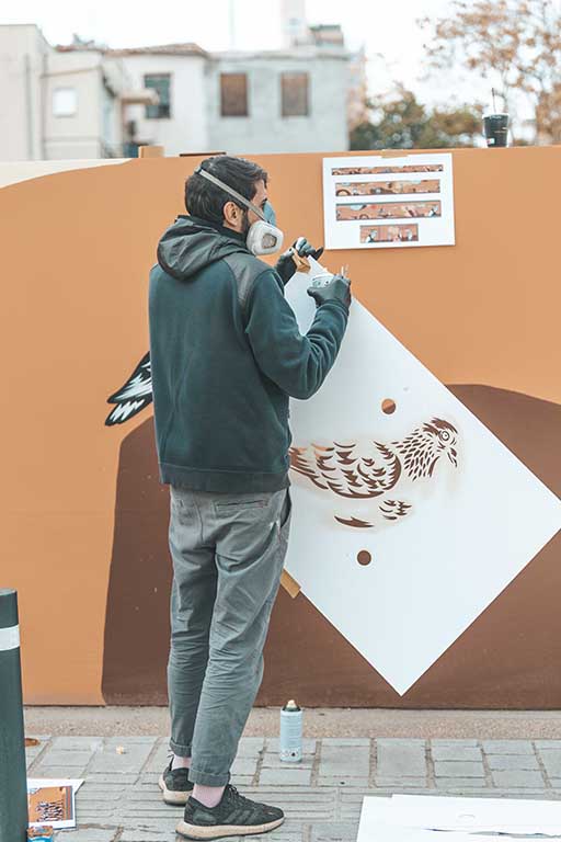 The mural, produced in collaboration with the Nicosia Board of Tourism and Municipality of Nicosia, was commissioned to ‘Twenty Three’, the veteran street artist whose identity – in the style of a Cypriot Banksy – isn’t generally known. He and his team took about six working days to complete the piece, having previously cut the stencils and assembled the various elements.