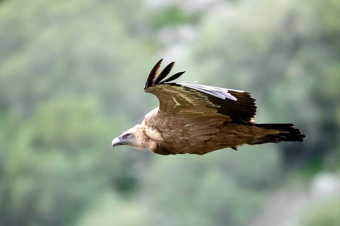 The vultures are under threat by indirect poisoning from baits set for foxes and hounds, reduction of food availability and collisions with electric cables and wind turbines.