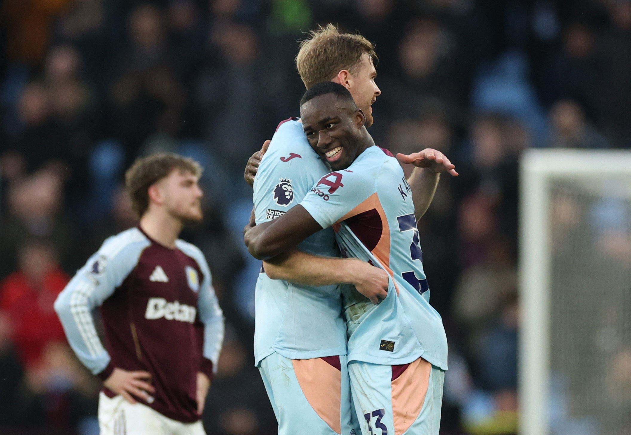 Schade was sent off in the 42nd minute after engaging in a tussle with Matty Cash and digging his studs into the Villa defender but Dango Outtara gave the visitors the lead in stoppage time, snapping up the rebound from his initial attempt to put the ball across the box and rifling it into the top corner.