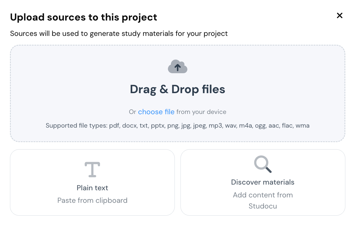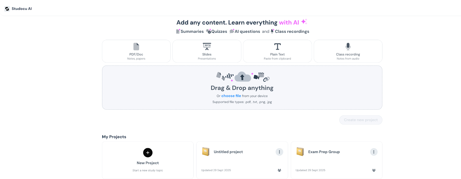 You simply need to click on the ‘New Project’ to create a shareable workspace for your study group. Once done, you can upload lecture slides, prep guides, and practice papers directly into the project.