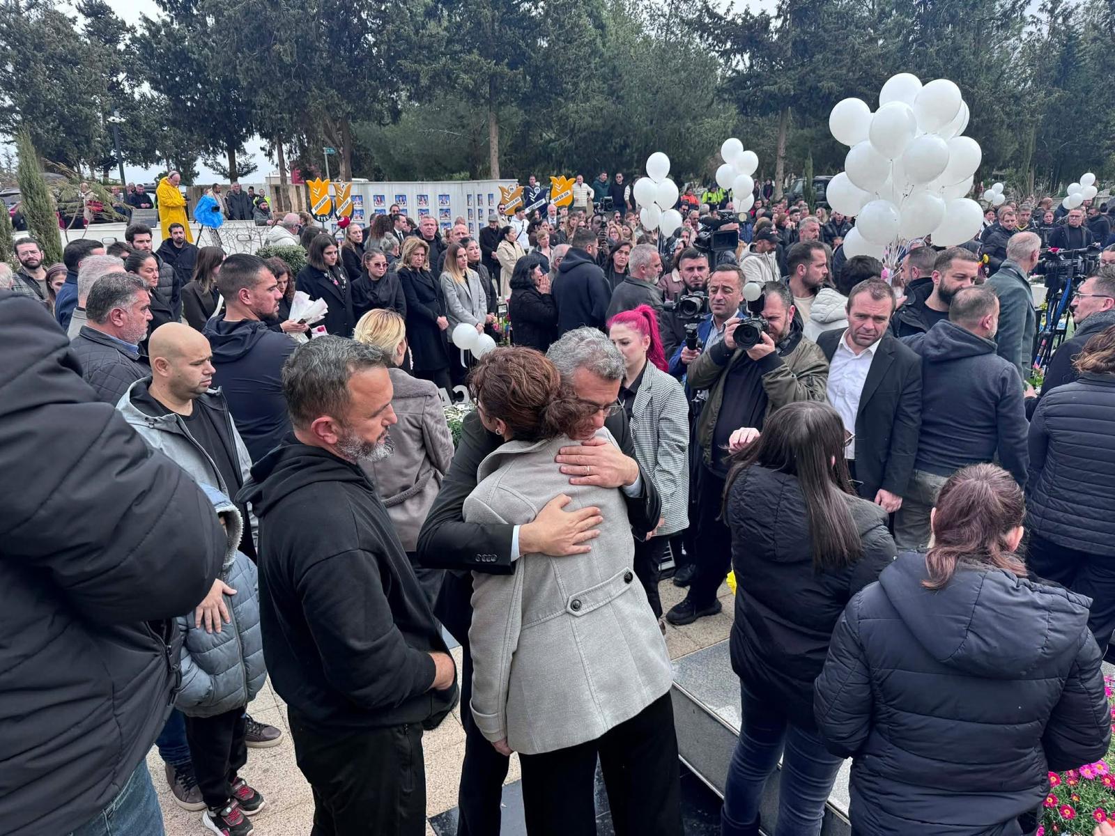 Mourners, led by Rusen Karakaya, whose daughter Selin was among the 24 Cypriot children killed at the Isias hotel, released white balloons into the skies above the cemetery.