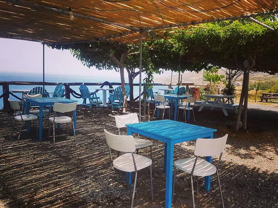For those seeking a cool breeze on a hot summer day, the café is also an ideal afternoon destination. Guests can try the home-produced zivania, served with small nibbles, or choose from a selection of beers and wines. On some afternoons, live mellow Greek music creates a unique and memorable atmosphere. When music events take place, booking is recommended, as the venue tends to fill quickly.