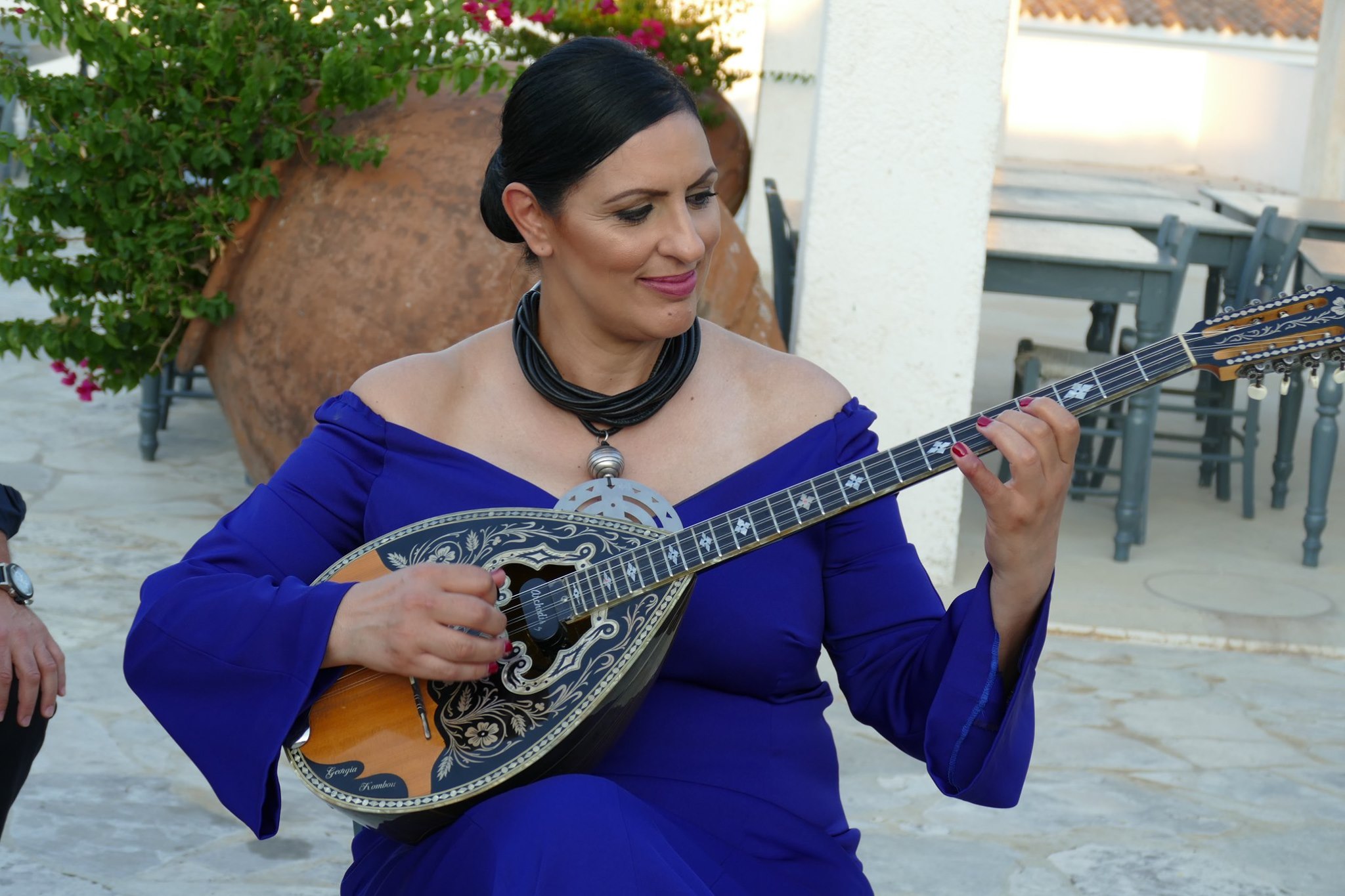 Since that day, at nine years old, Kombou has not put down her bouzouki. She went to Greece to study advanced music theory and met the acclaimed Greek composer Thanasis Polikandriotis, who opened the doors for her, and performed alongside outstanding historical musicians. “We played in concerts together in Athens, and this gave me the chance to showcase the female approach to bouzouki, from Cyprus.”