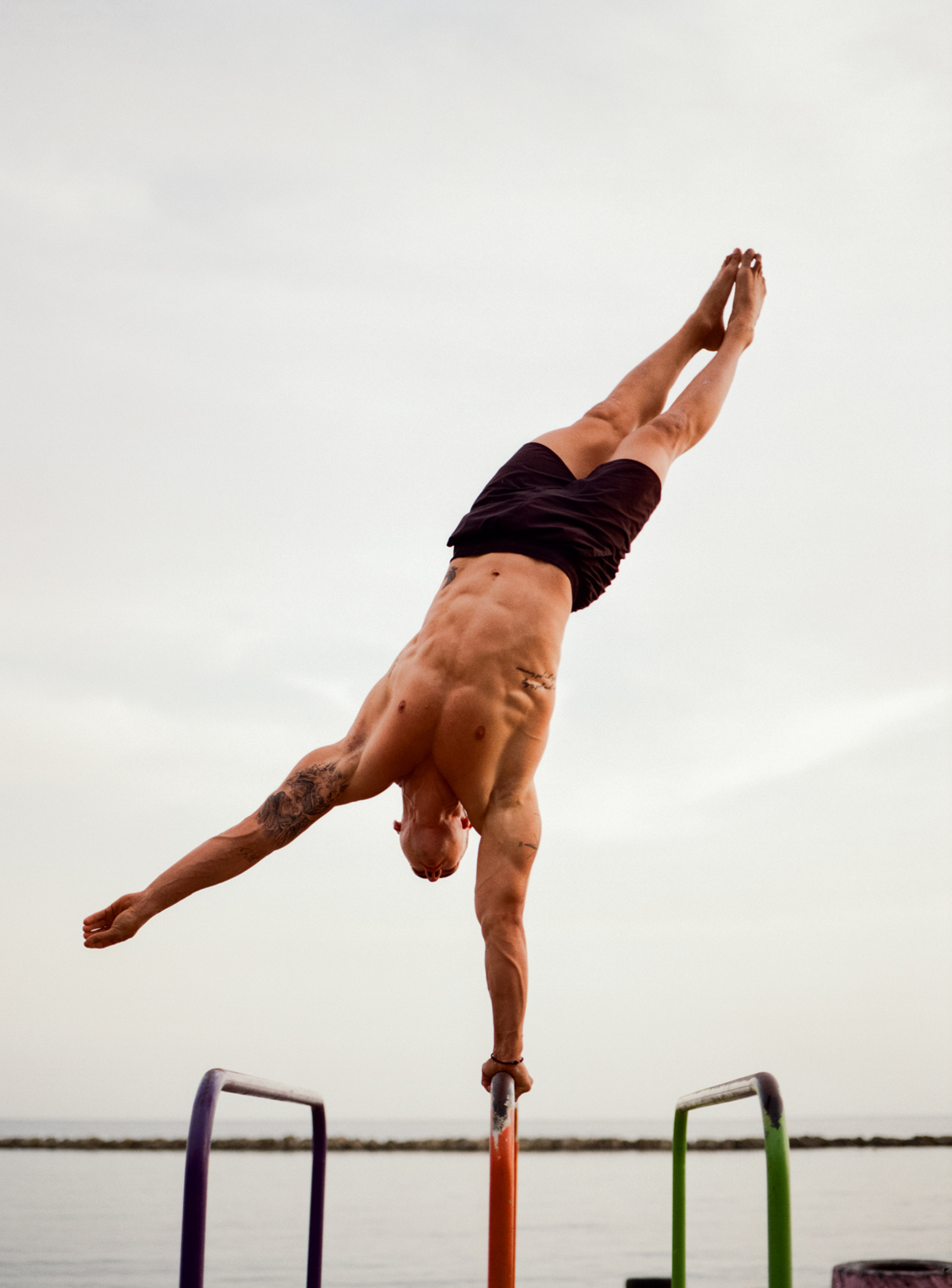 This relationship shifts in Power Beach. Here, athletes are captured absorbed in movement, turning their gaze away from the lens. The focus moves toward discipline, effort and physical control.