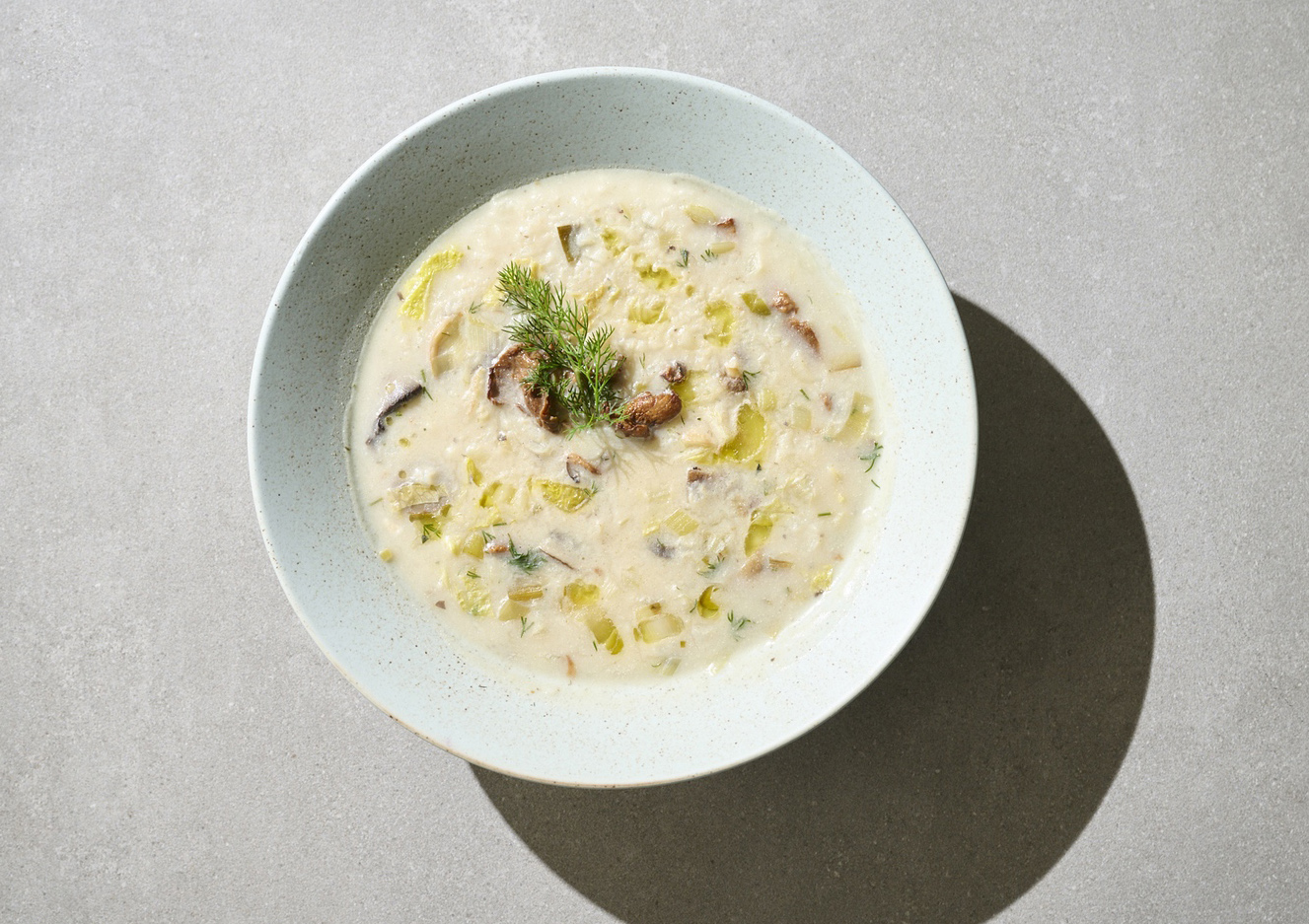 In a bowl, mix the lemon juice with the cornstarch until dissolved. Add the tahini and oregano and homogenise. Pour 2-3 ladles of hot broth from the pot into the mixture to ‘temper’ the temperature.