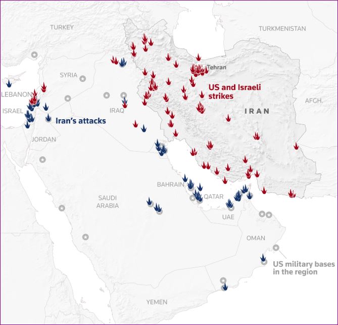 At least 1,230 people have been killed in Iran since the fighting began a week ago, according to the Iranian Red Crescent Society. The Lebanese health ministry has reported 123 people killed and 683 wounded as a result of Israeli attacks. At least 10 Israelis have been killed by Iranian attacks.