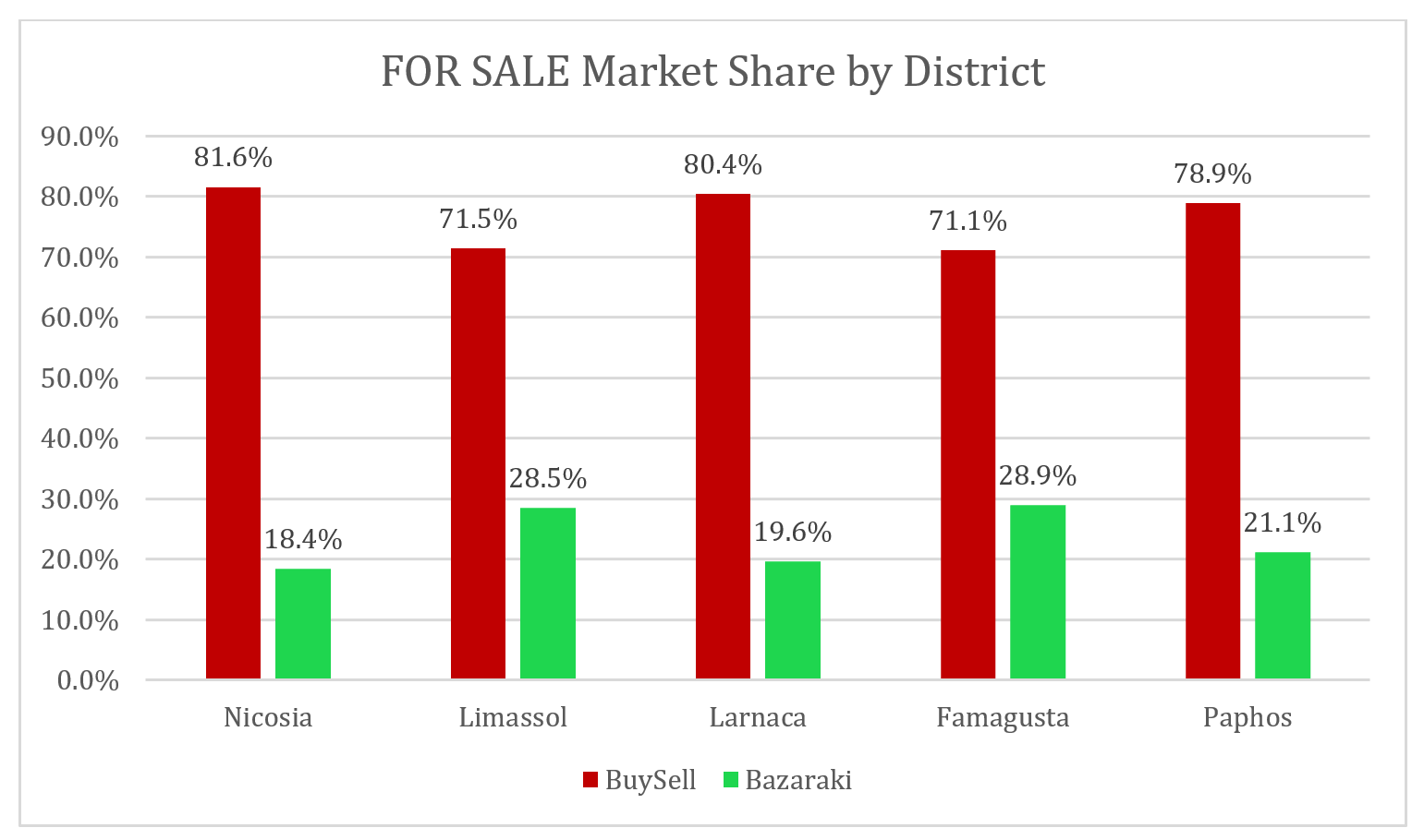 The latest research confirms the findings of the previous IMR/University of Nicosia study published in Cyprus Mail (26/9/2025) and SigmaLive (29/9/2025), and confirms that the real estate platform BuySell consistently holds the largest share of active property-for-sale listings in Cyprus, ranging between 71 per cent and 82 per cent across all districts.