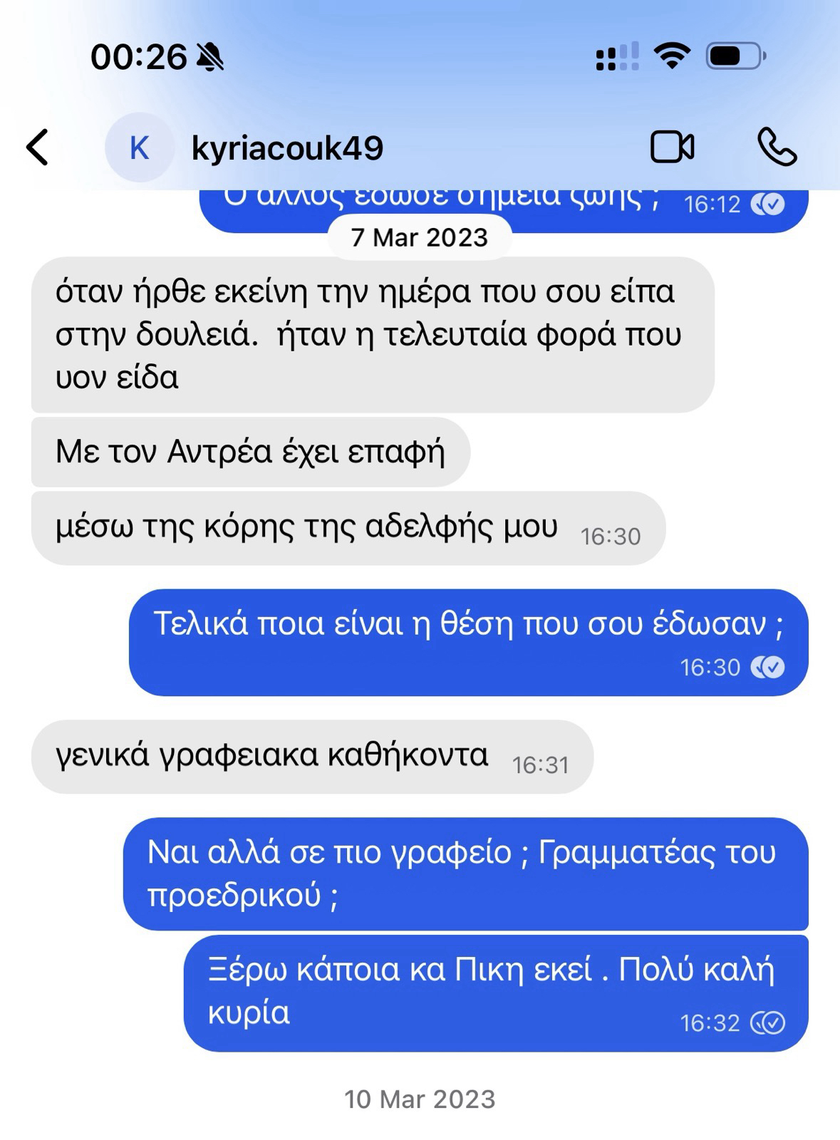 Drousiotis alleged that the presidential palace was seeking to destroy evidence linked to the “Sandy” case. He claimed that messages – purportedly sent by the woman known as “Sandy” – indicating she had been employed at the presidential palace were at the centre of concerns, and shared what he said were the relevant communications in his post.