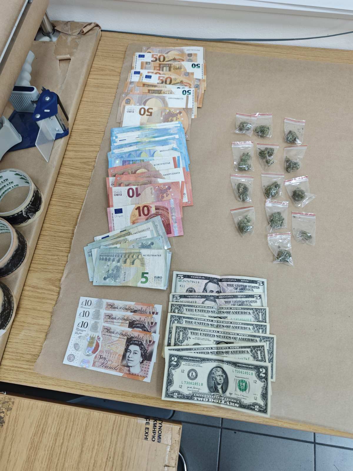 The police also found a sum in cash, which was confiscated as evidence.