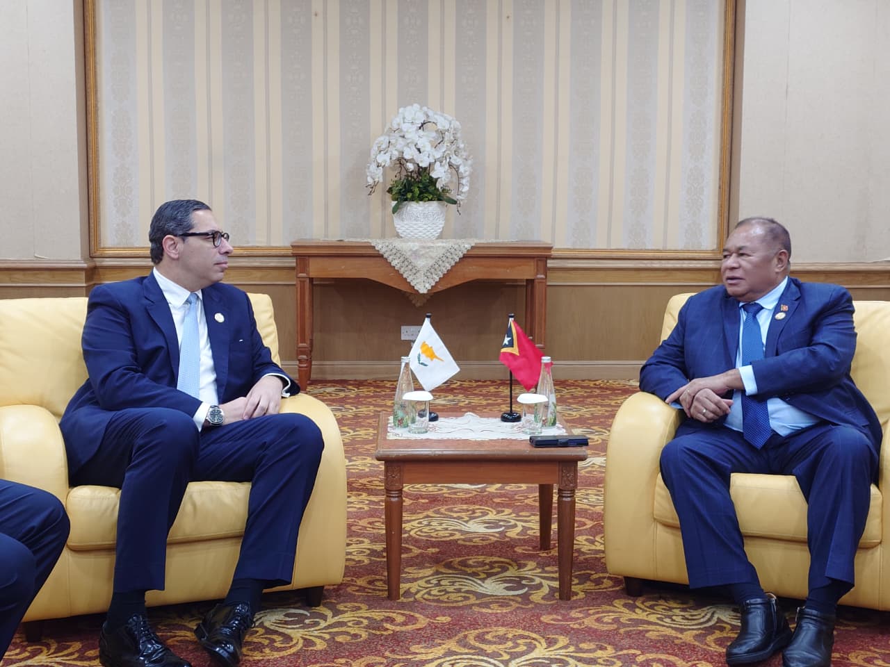 He then met Timor-Leste Foreign Minister Bendito dos Santos Freitas, saying that in that meeting, “we … reaffirmed our shared commitment to international law, sovereignty, and territorial integrity”, while also discussing ways to develop relations between Cyprus and Timor-Leste.