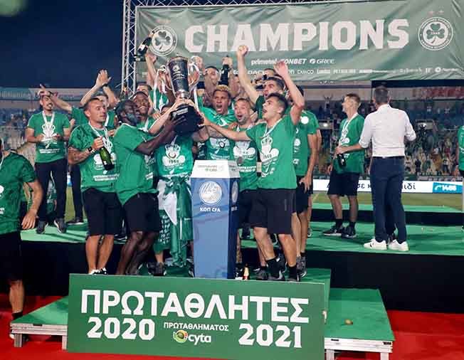 Omonia were presented with the championship trophy on Monday night at the GSP stadium in Nicosia as the Greens ended the season with a 1-1 draw against Apollon.