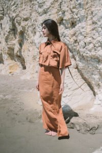 Working closely with a pattern cutter and seamstress, Vasilki has produced two collections to date: each consisting of roughly 12 different designs. Among her spring/summer 2021 collection are the Genie Pants (loose and flowing with an easy elasticated waist, and made from 100 per cent linen), the Lia Skirt (pull on, with a tie top for ease of access and multiple styling options), and the Adonis shirt (constructed from a soft, breathable satin and complete with Velcro closures at the front).