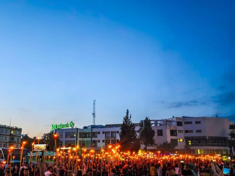 Protesters gathered at northern Nicosia’s bus station holding tiki torches, with the protest aimed at “shining a light on justice” for the 24 children and 11 other Cypriots who were killed.