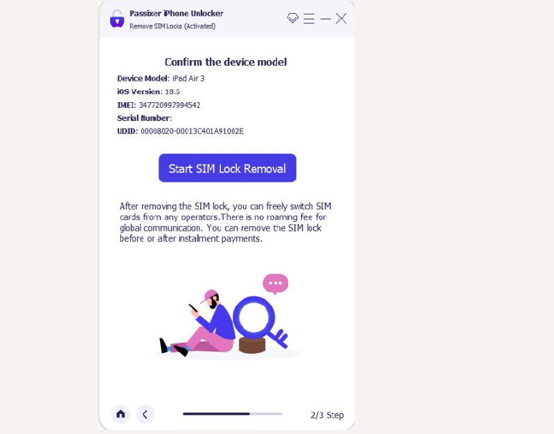 Step 4: Review your device information and select Start SIM Lock Removal to proceed.