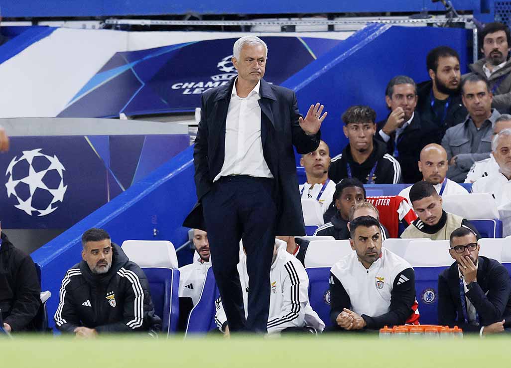 On Tuesday, back at his former club Chelsea as the new coach of Benfica, Mourinho’s most eye-catching intervention was down the touchline again, but this time his run was to urge his team’s fans to stop hurling objects onto the pitch.