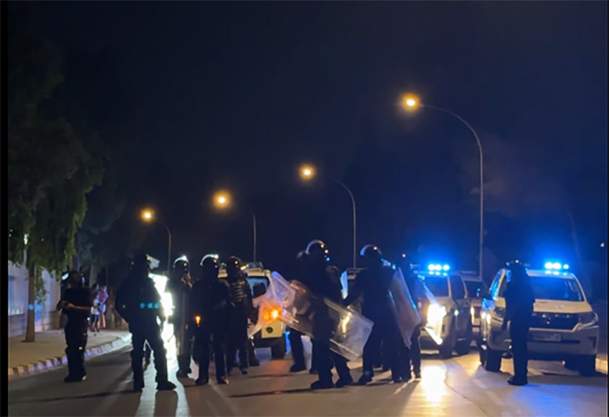 The police’s water cannon, dubbed ‘Aiantas’, was on site but not used. Witnesses also spotted drones flying overhead.