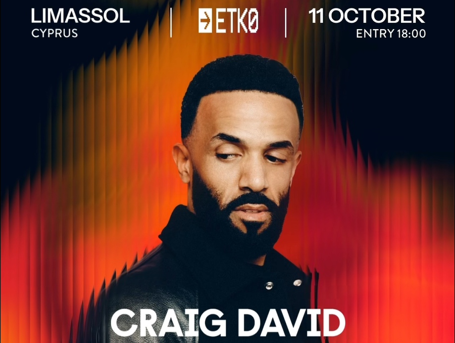 Live music event with performances by global artists Craig David, TS5 and Loreen. October 11. ETKO Limassol. 6pm. https://etkocyprus.com/events/craigdavidloreen