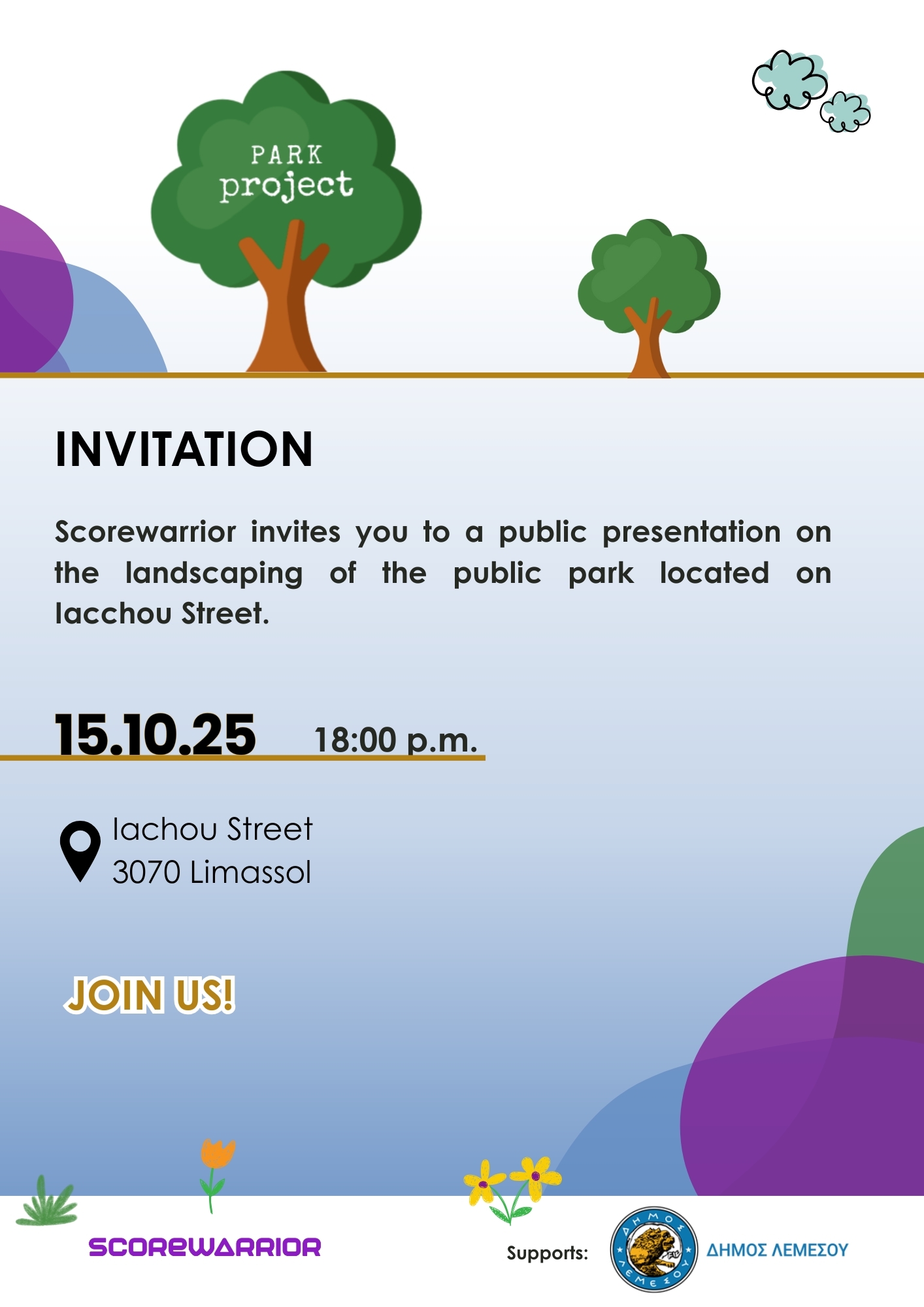 The event will begin at 6 pm with welcoming remarks by Katerina Konnari, Scorewarrior HR Manager, followed by the official address of Limassol Mayor Yiannis Armeftis, who will highlight the project’s importance for the local community.