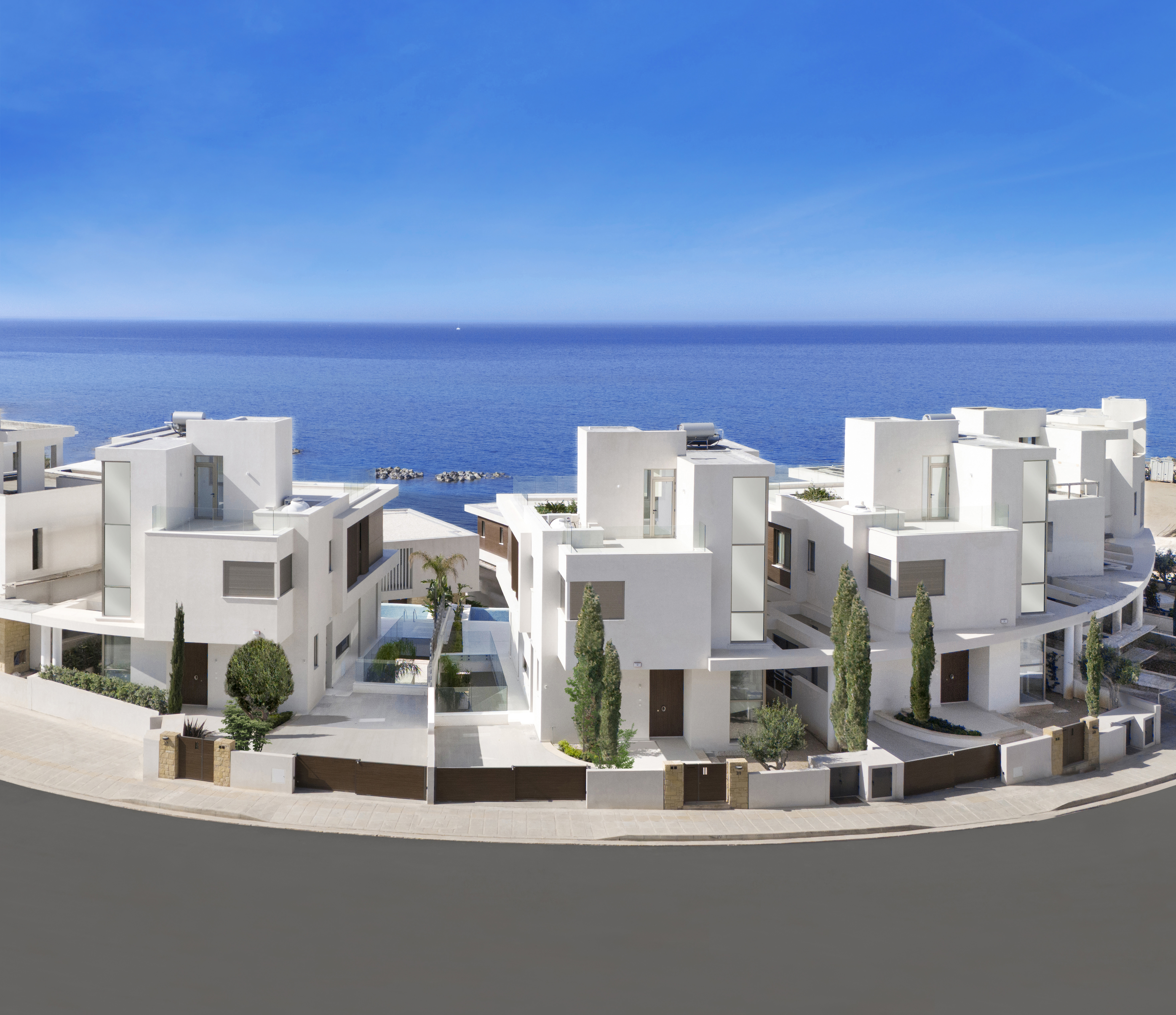 Armonia Beach Villas is superbly located on the coastline in a pristine, sought-after area, halfway between Paphos Harbour and the picturesque sandy beach of Coral Bay. The villas are built to the highest standards featuring private swimming pools, large landscaped gardens, BBQ areas, spacious verandas with extensive outdoor living areas, modern architectural design with the latest technology, quality finishes, private parking and more.