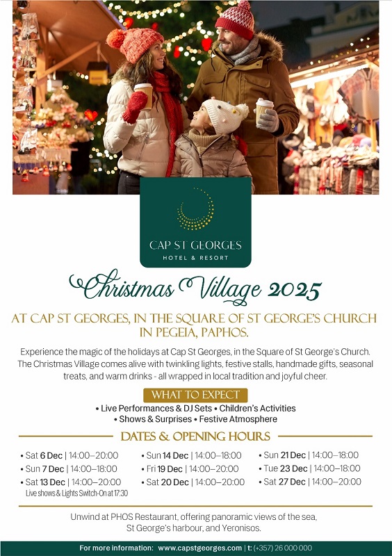 This Christmas, magic comes alive in a truly special place: at Cap St Georges, in the square of the Church of Saint George, in Peyia, Paphos.