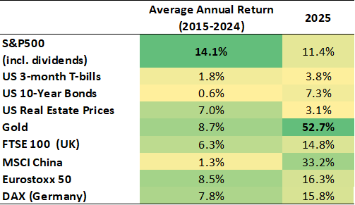 The reason for showing the returns on these investments, as well as the comparison of the previous decade with 2025, is to emphasize that past returns are always indicative of the prevailing macroeconomic factors during that period.
