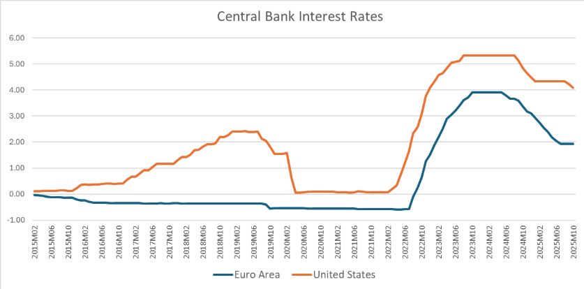 However, that period is now irrevocably over: the European Central Bank’s interest rate stands at 2 per cent, with markets not anticipating any further change in interest rates until 2026, while the Federal Reserve’s interest rate is expected to fall from its current levels, but at a much slower pace and remain higher than before. Most importantly, neither the US, the eurozone, nor the UK are expected to return to zero interest rates unless there is an economic crisis.